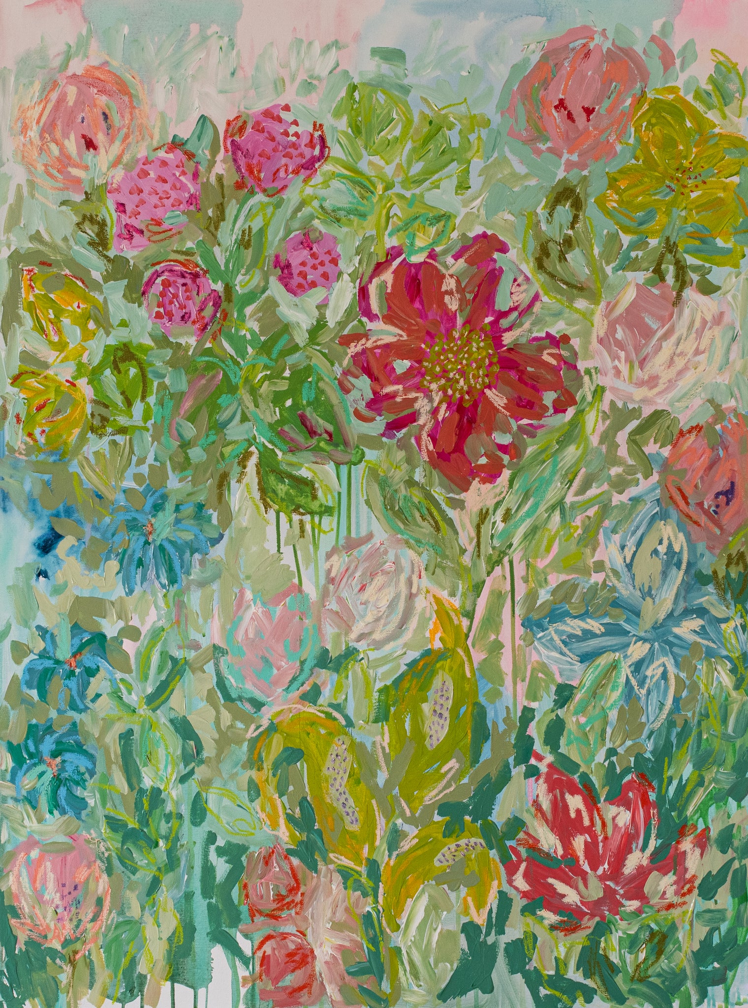 Wildflowers features vibrant and energetic florals in a field. I painted this with the vision of the sun shining bright, the wind softly blowing and a hot cup of coffee in your hand.