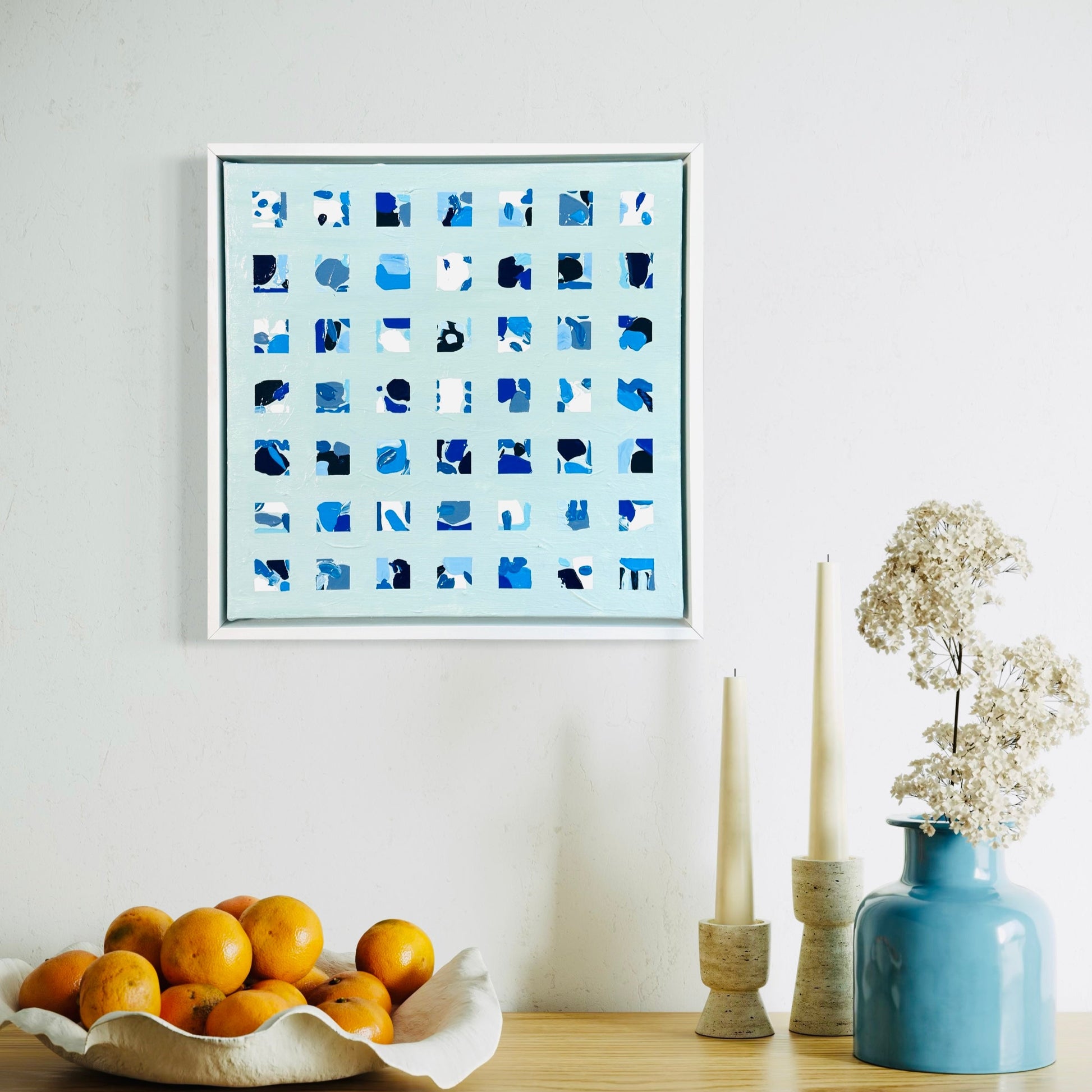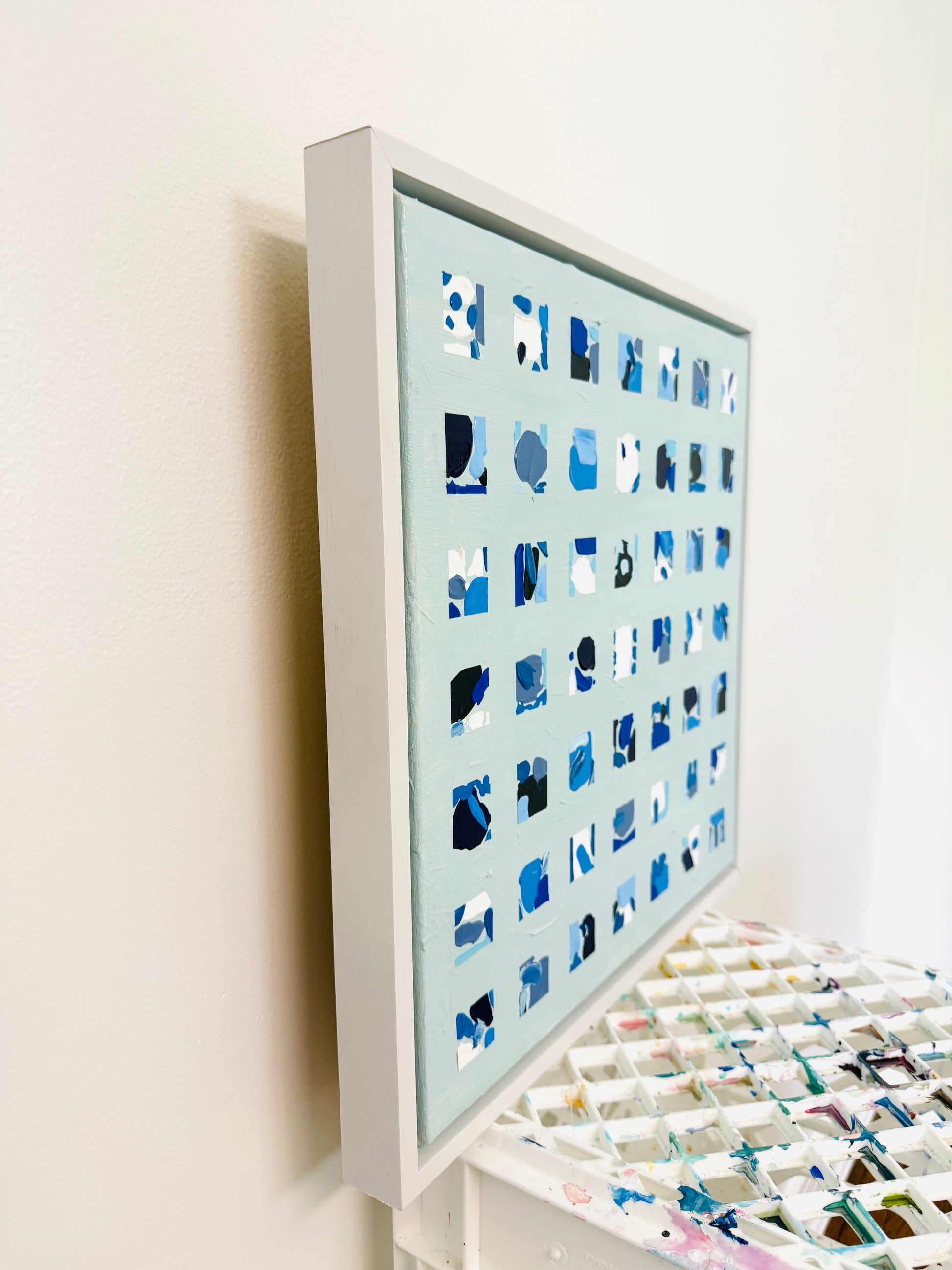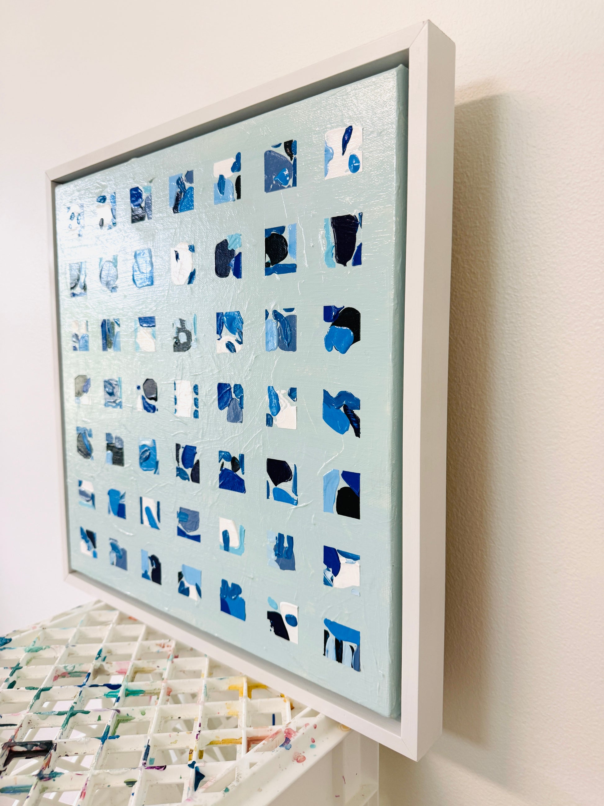 A soft balance of restraint and vibrancy, Desert Dreams is a 16 x 16 blue monochromatic and minimal acrylic painting that brings peace and calm to any room. Inspired by the idea that peace and relaxation aid in a great night's sleep, and often the rolling sounds of the ocean don't hurt! This piece celebrates simplicity with confident brushwork and intentional markings.