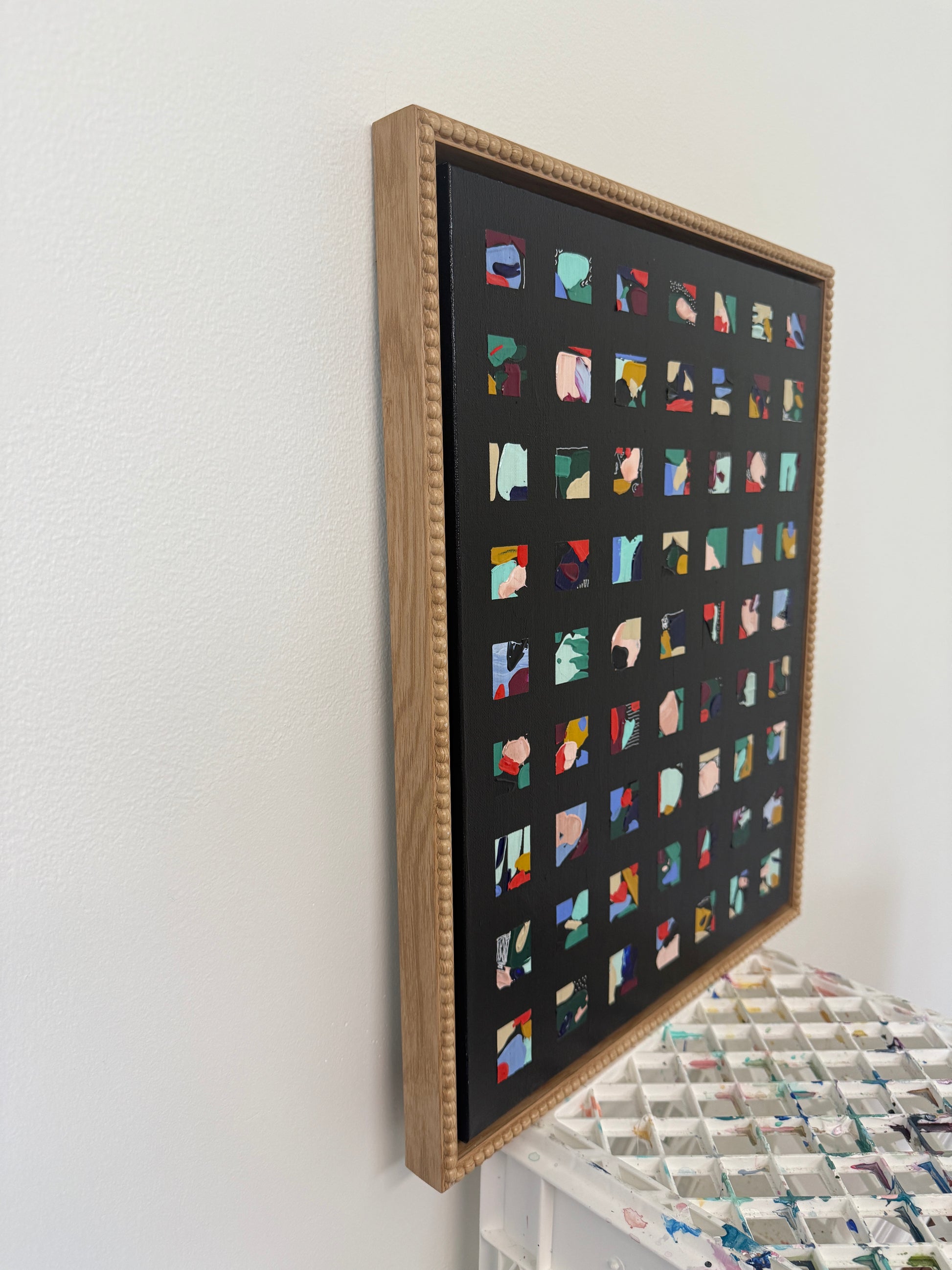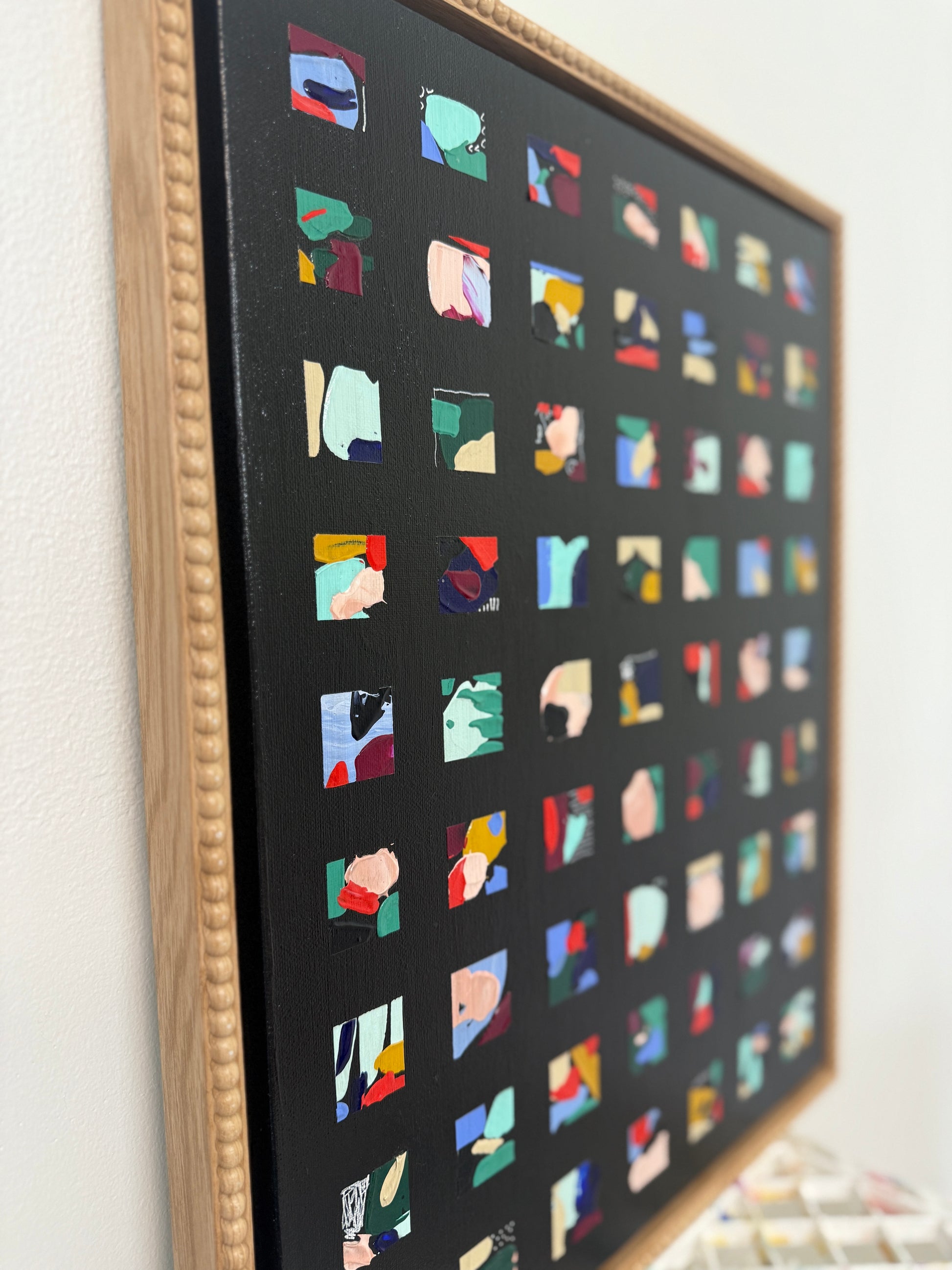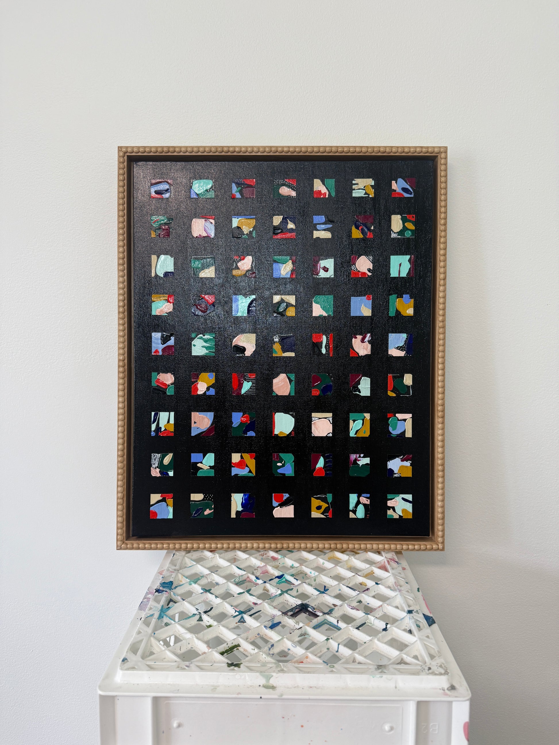 A lively showing of color and expression, Double Down, is a 16 x 20 black and bright colorful acrylic painting that brings energy and excitement to any room. Inspired by the idea that vacation is a mixture of activity from down time and reflection to scheduled events. This piece celebrates that holding both sentiments at the same time is oiften where lifelong memories are made.