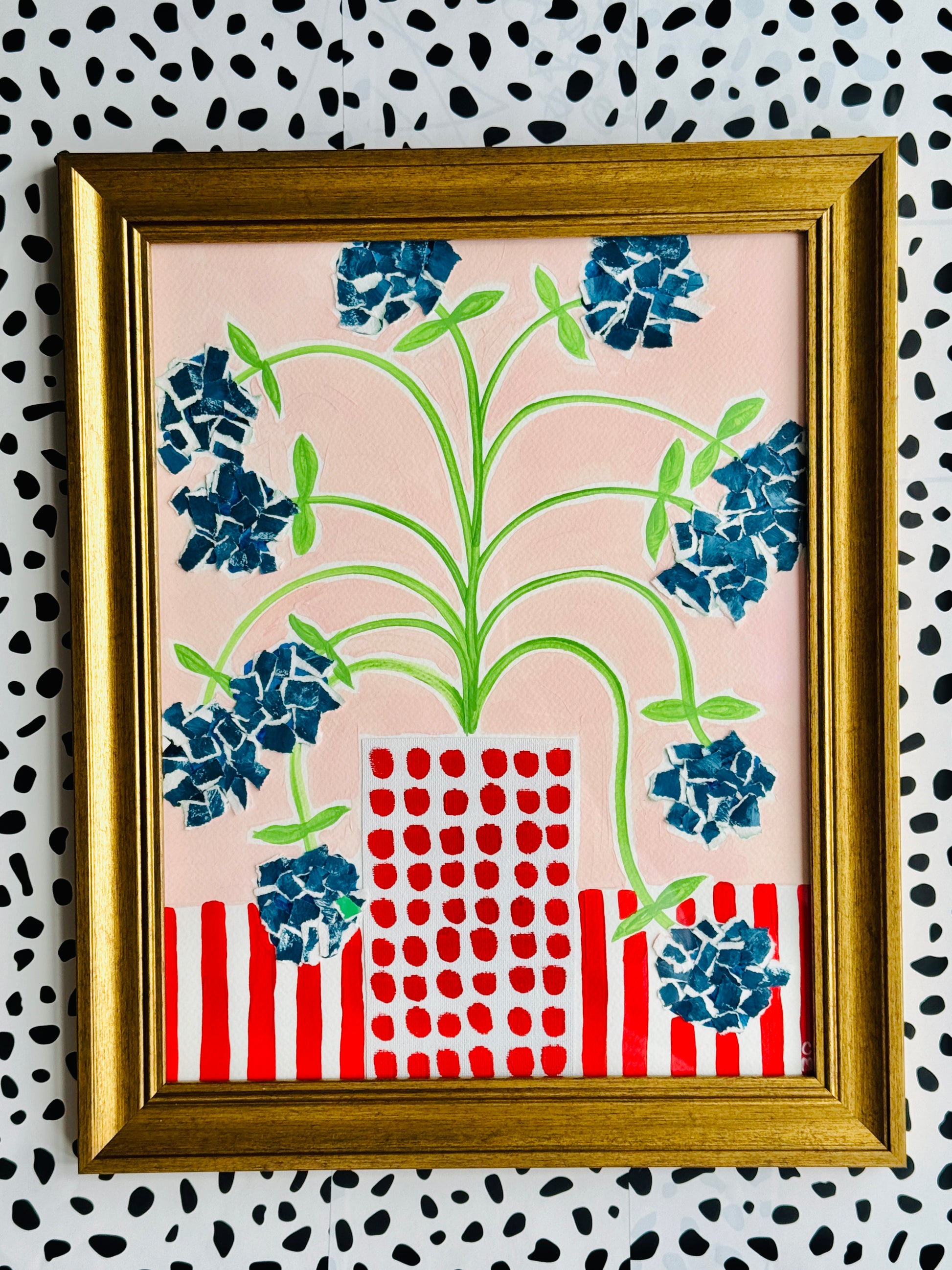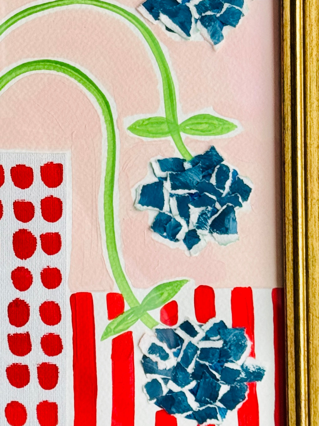 This one-of-a-kind 11” x 14” mixed media artwork blends bold abstraction with delicate floral inspiration, created on heavyweight archival paper for rich texture and lasting quality. Layers of paint, torn pieces of paper, and intricate details bring depth and movement, making this piece a striking yet elegant statement for your space.