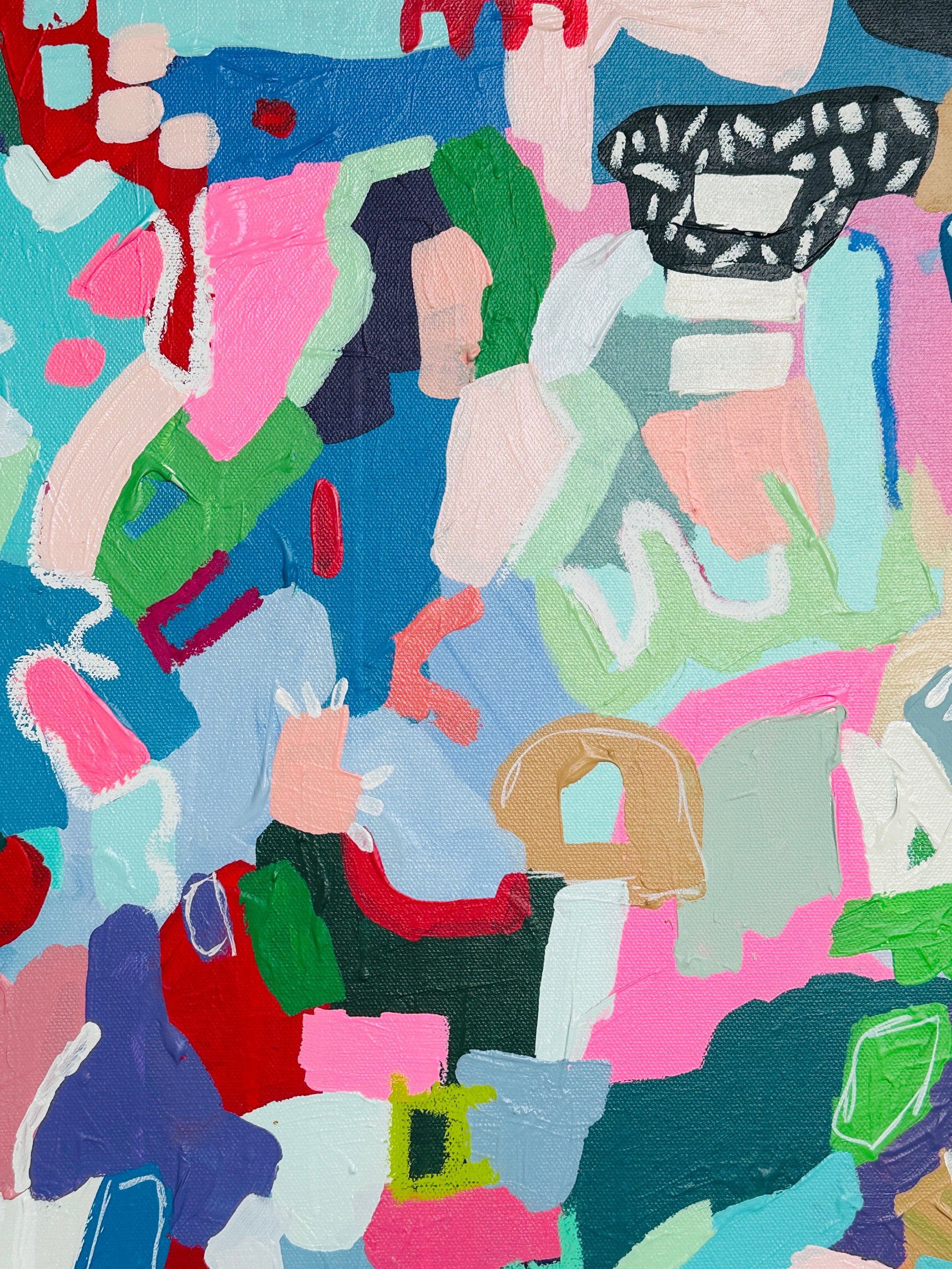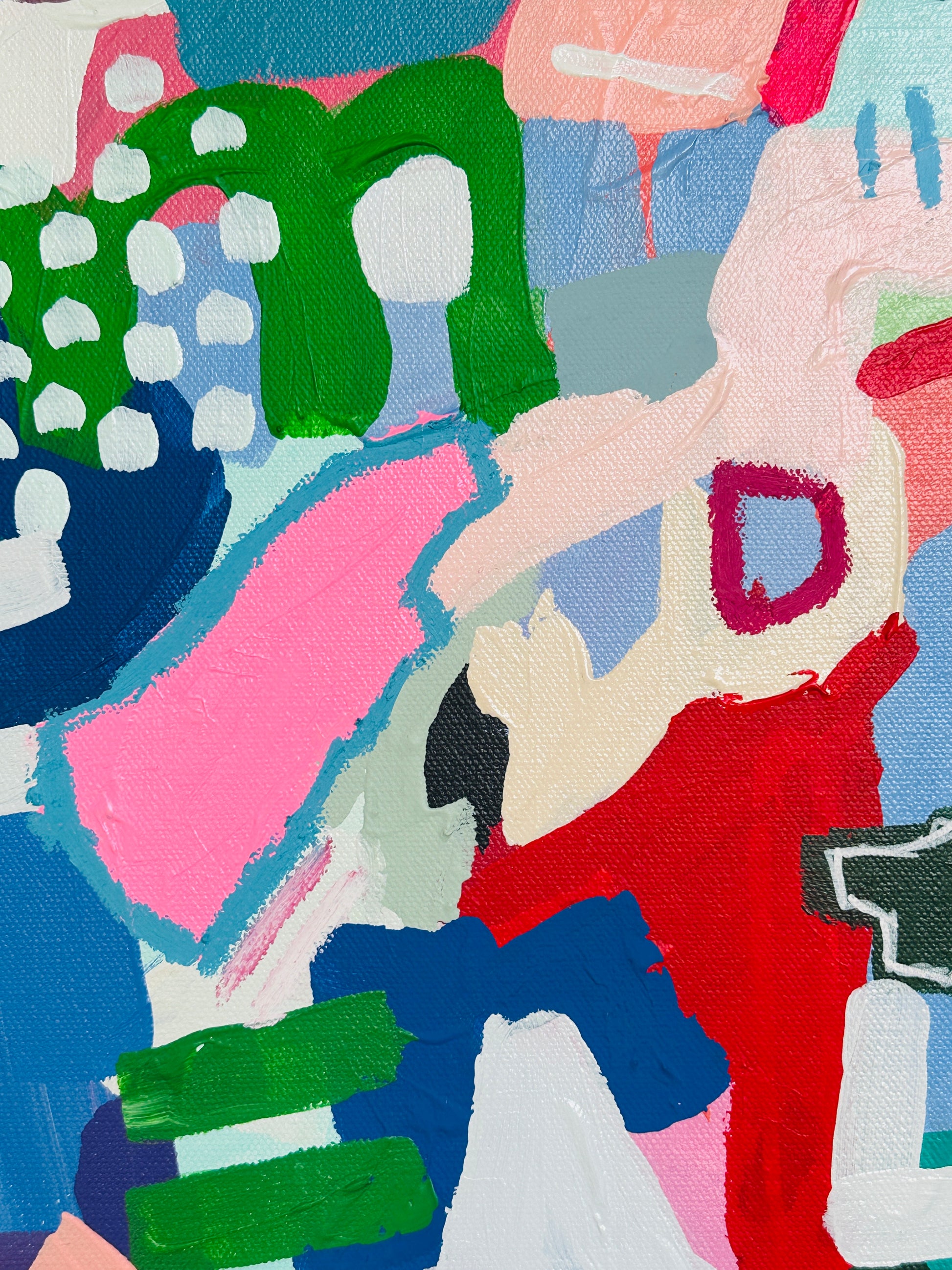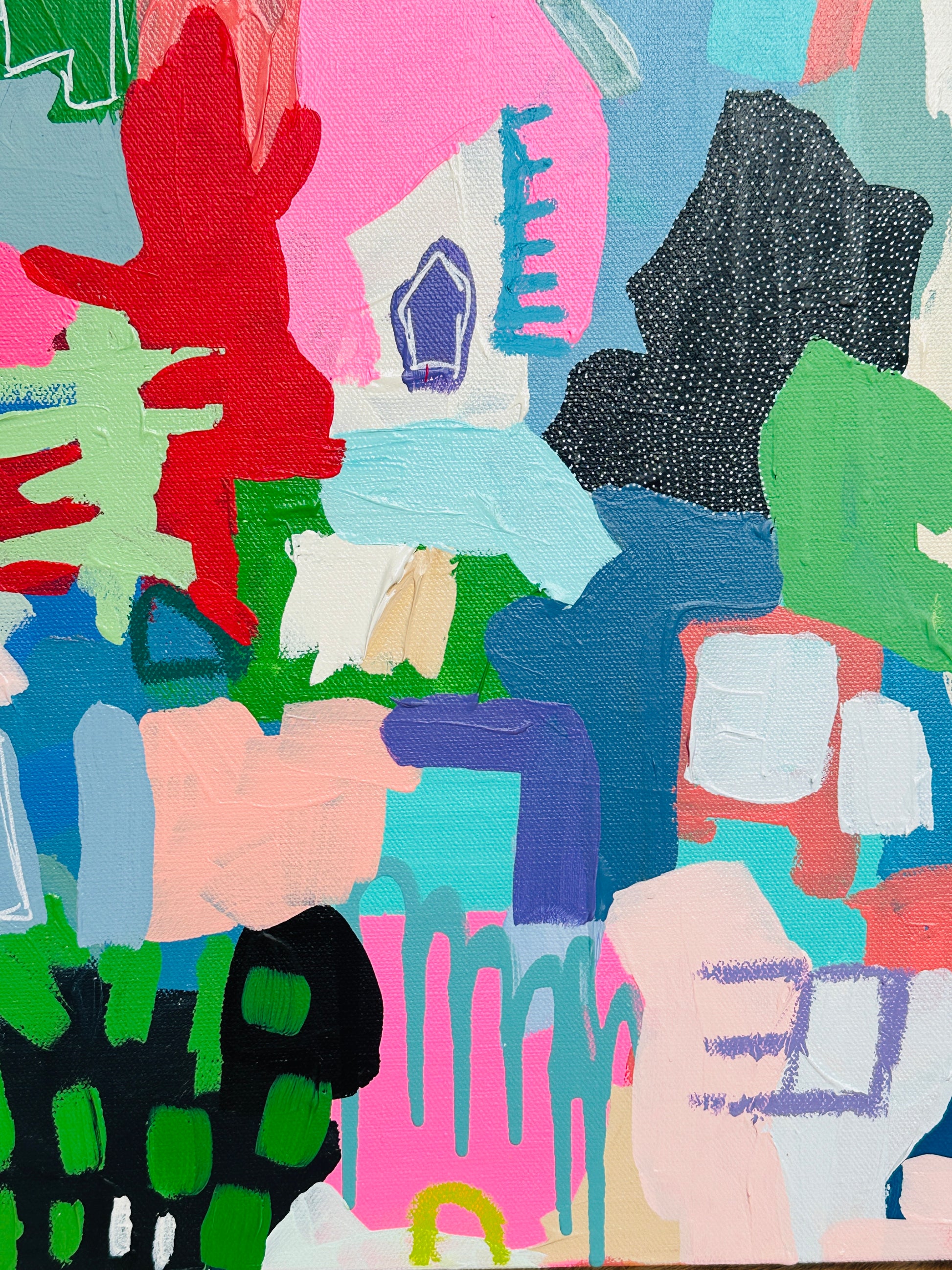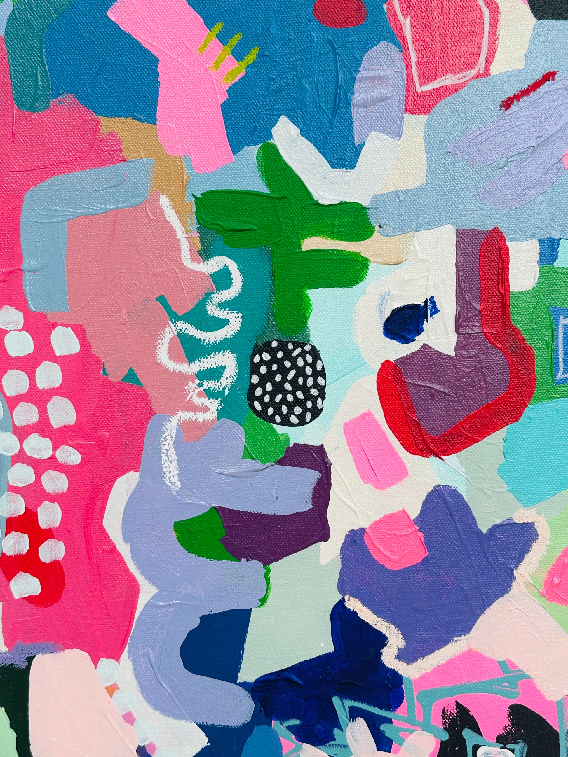 This piece is about really getting into a project and seeing it through. Make the time to get your hands dirty in Nature, in Art, in Life. Being involved can sometimes be messy, but often times it is worth it. I love the color stories and shape play this piece has. It seems chaotic but upon further notice you see all the shapes play perfectly together; they all have a specific role and placement.