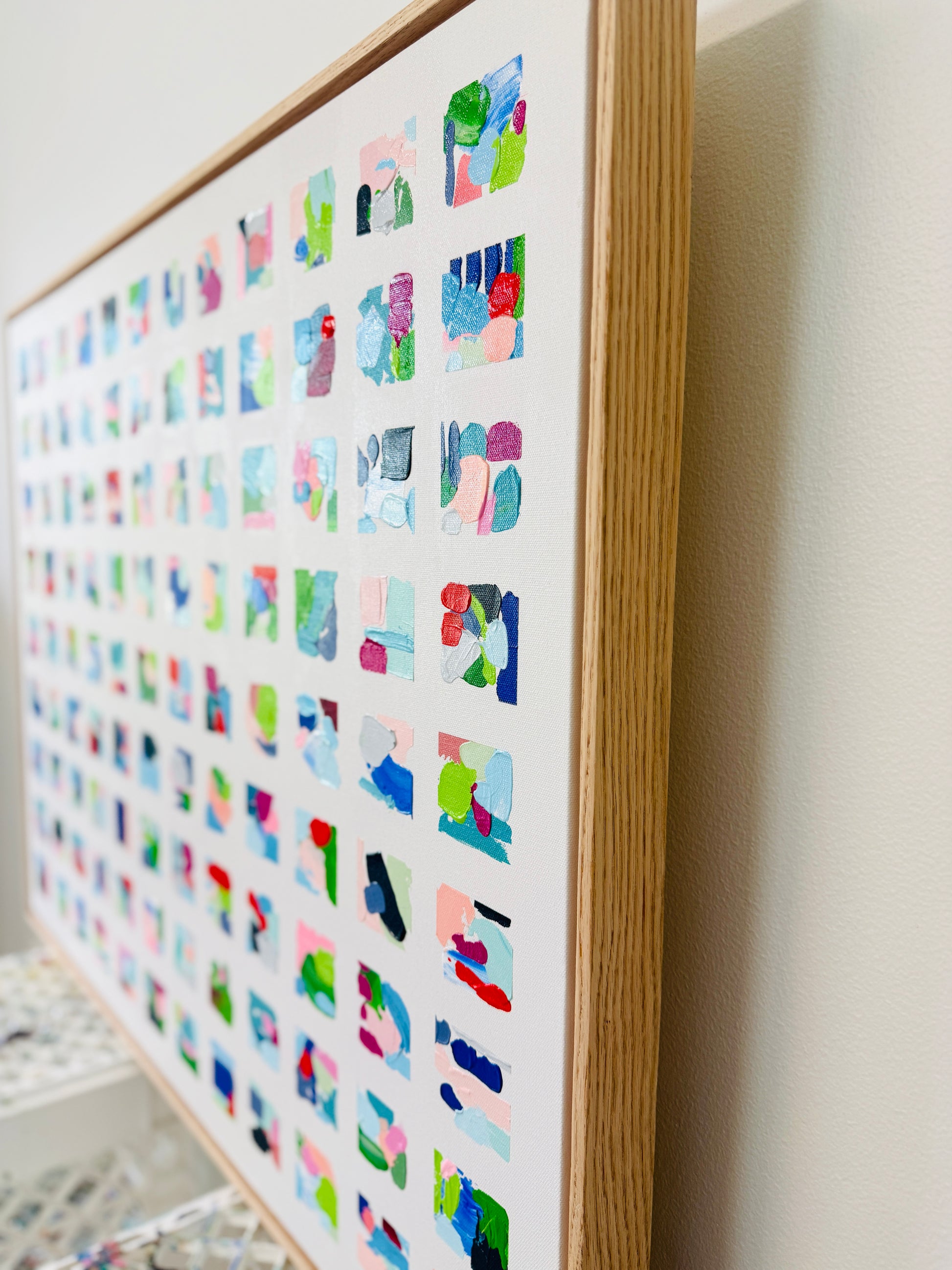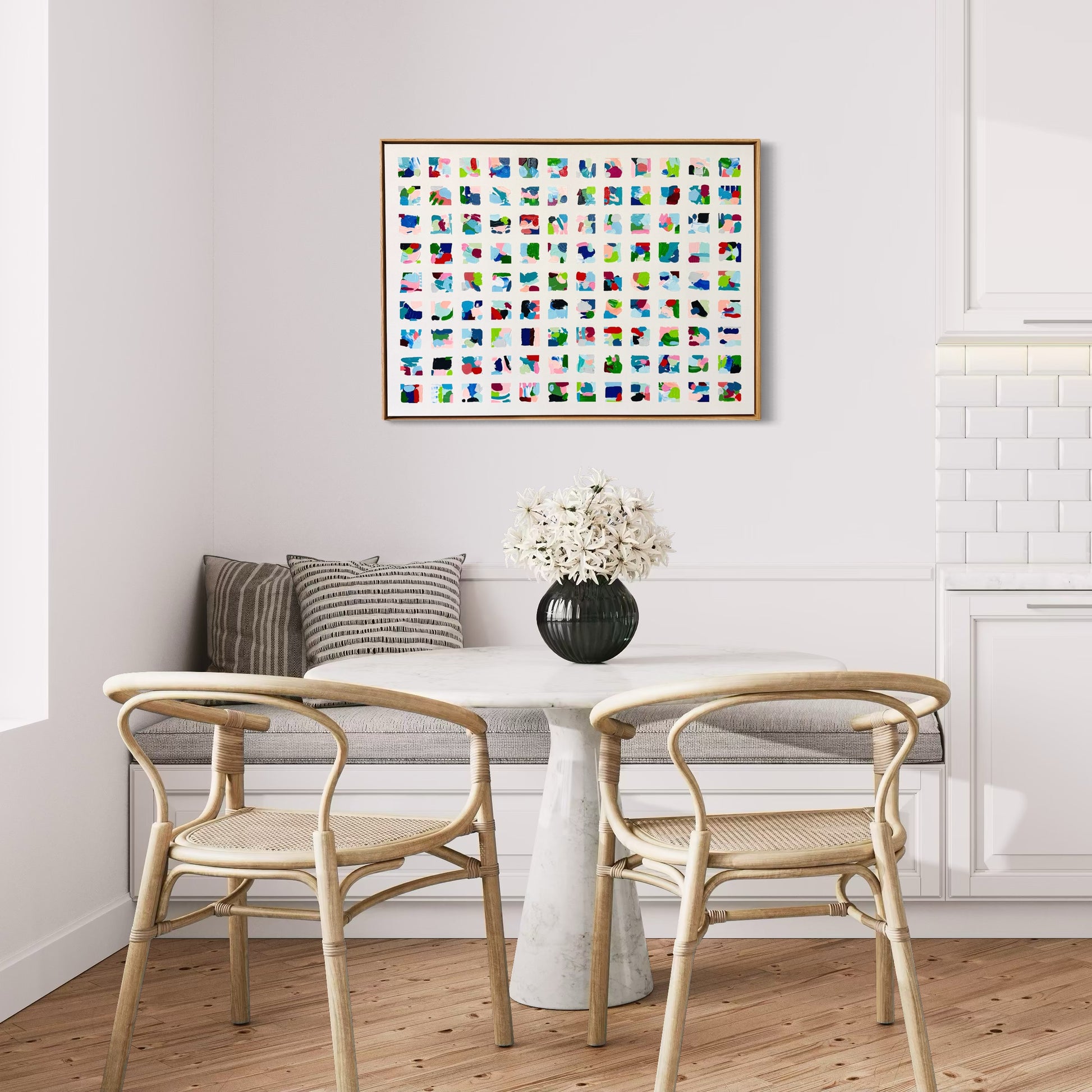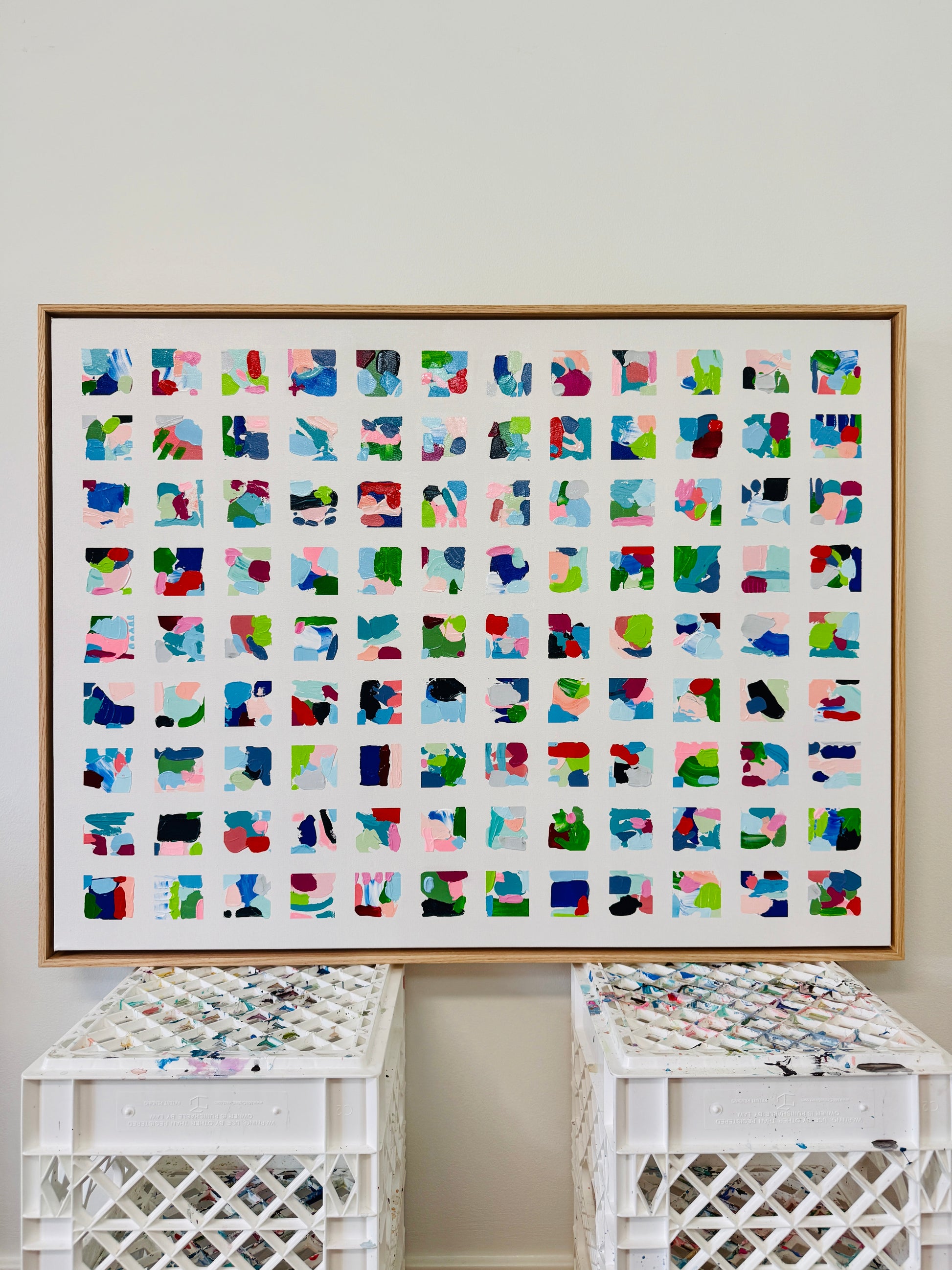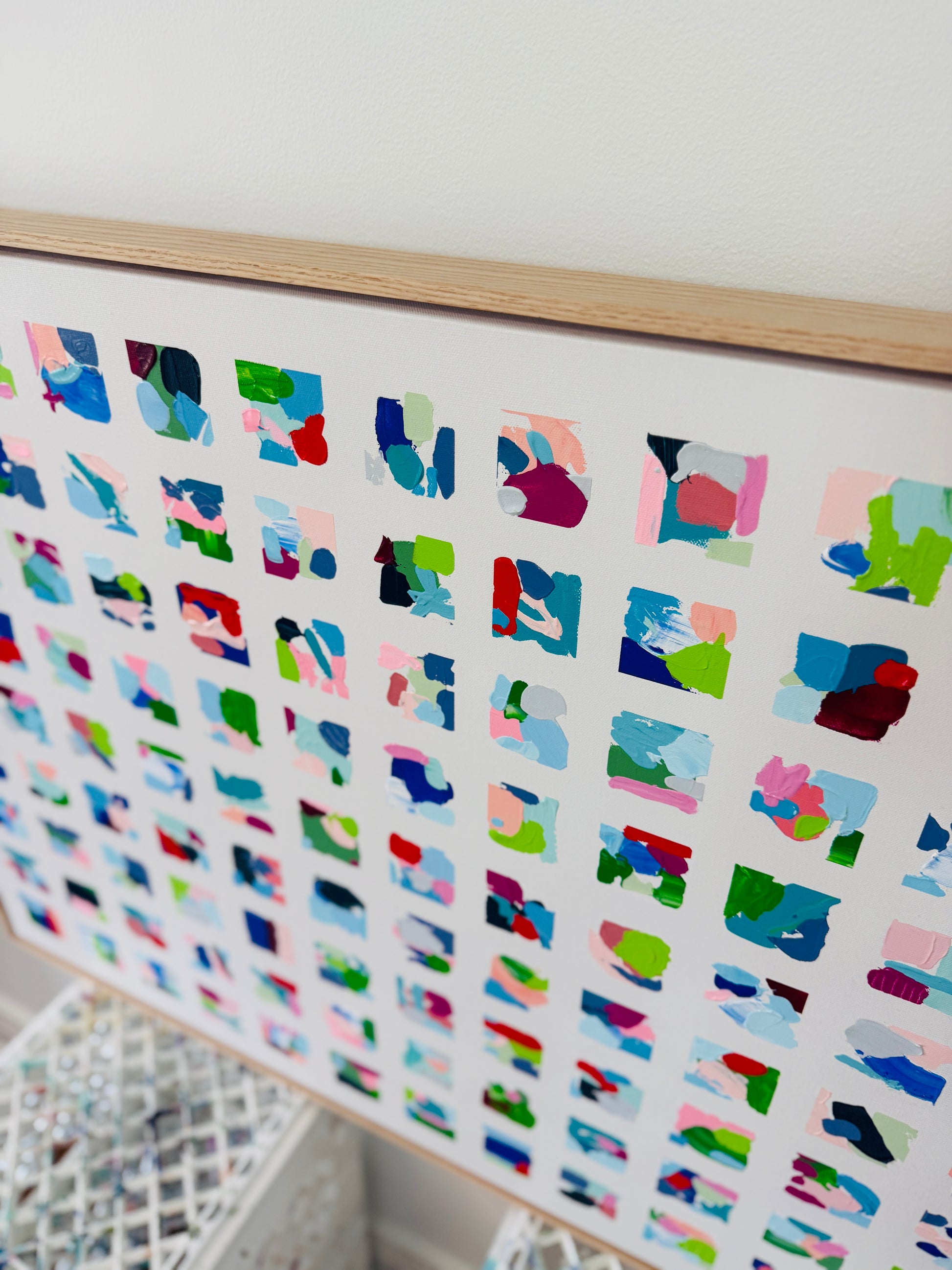 Rooted in place, yet open to interpretation, this painting is a subtle nod to the idea of simple and intentional color placement and marks—reimagined for the contemporary home.
