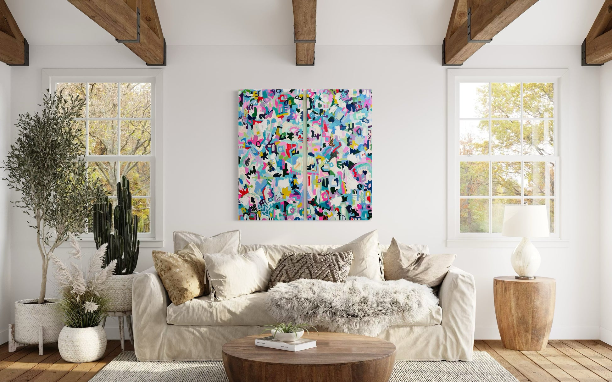 Elevate your space with this stunning original abstract diptych—two **24" x 48" modern art canvases** designed for collectors who appreciate bold, colorful art. This one-of-a-kind statement piece is perfect for contemporary interiors and art enthusiasts seeking unique, hand-painted artwork. **Complimentary shipping** within the U.S. or local pickup in Louisville, KY. Own a piece of original abstract art*today!