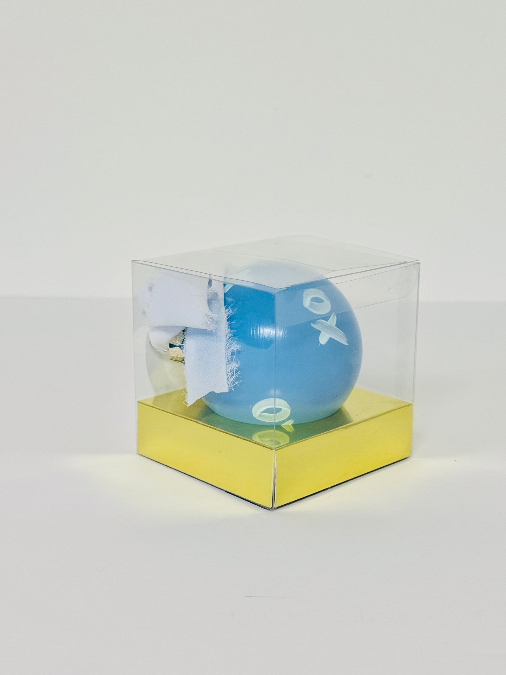 3” round ceramic ornament painted with tied ribbon. Comes with box ready to be gifted!